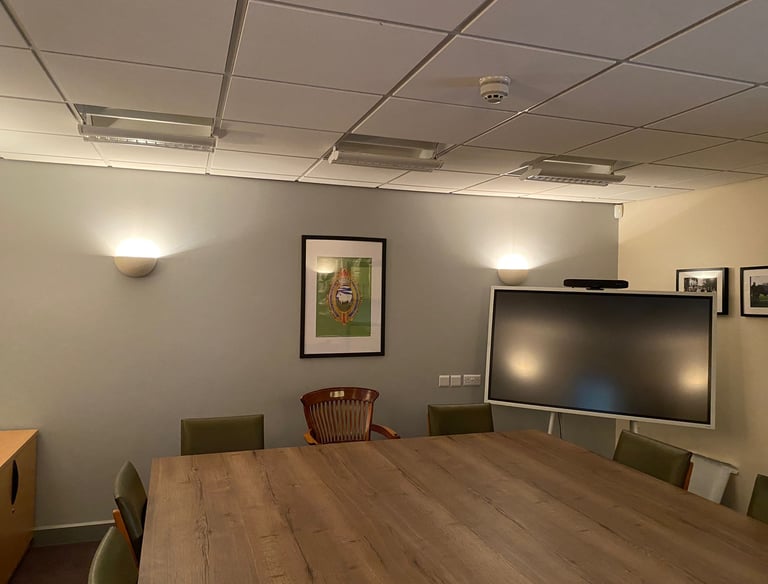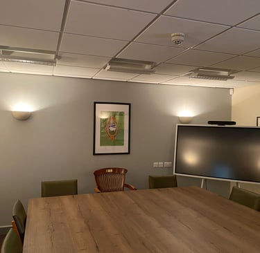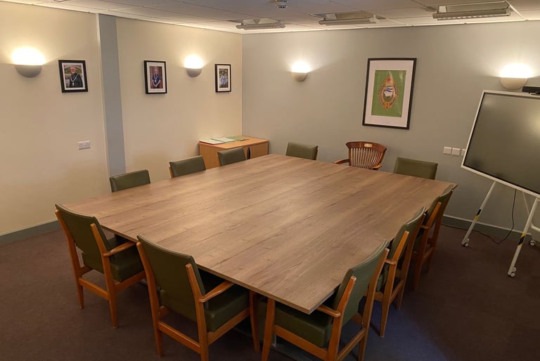 The conference room is available for groups of up to 20 people, providing a private and intimate space for discussions and meetings.