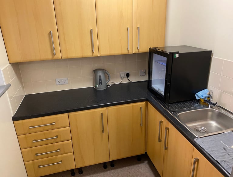 Conveniently located adjacent to the conference room is a small dedicated kitchen, offering a convenient space to prepare refreshments and light snacks. This thoughtful amenity ensures that your group can stay energized and focused throughout your meeting or event.