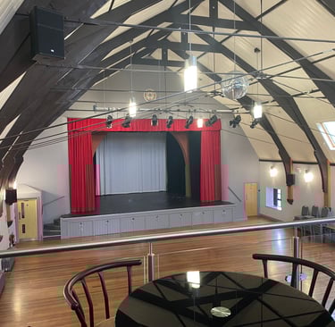 The fully refurbished stage provides state of the art LED Lighting and Sound Systems suitable for a range of productions from choirs to pantomimes.